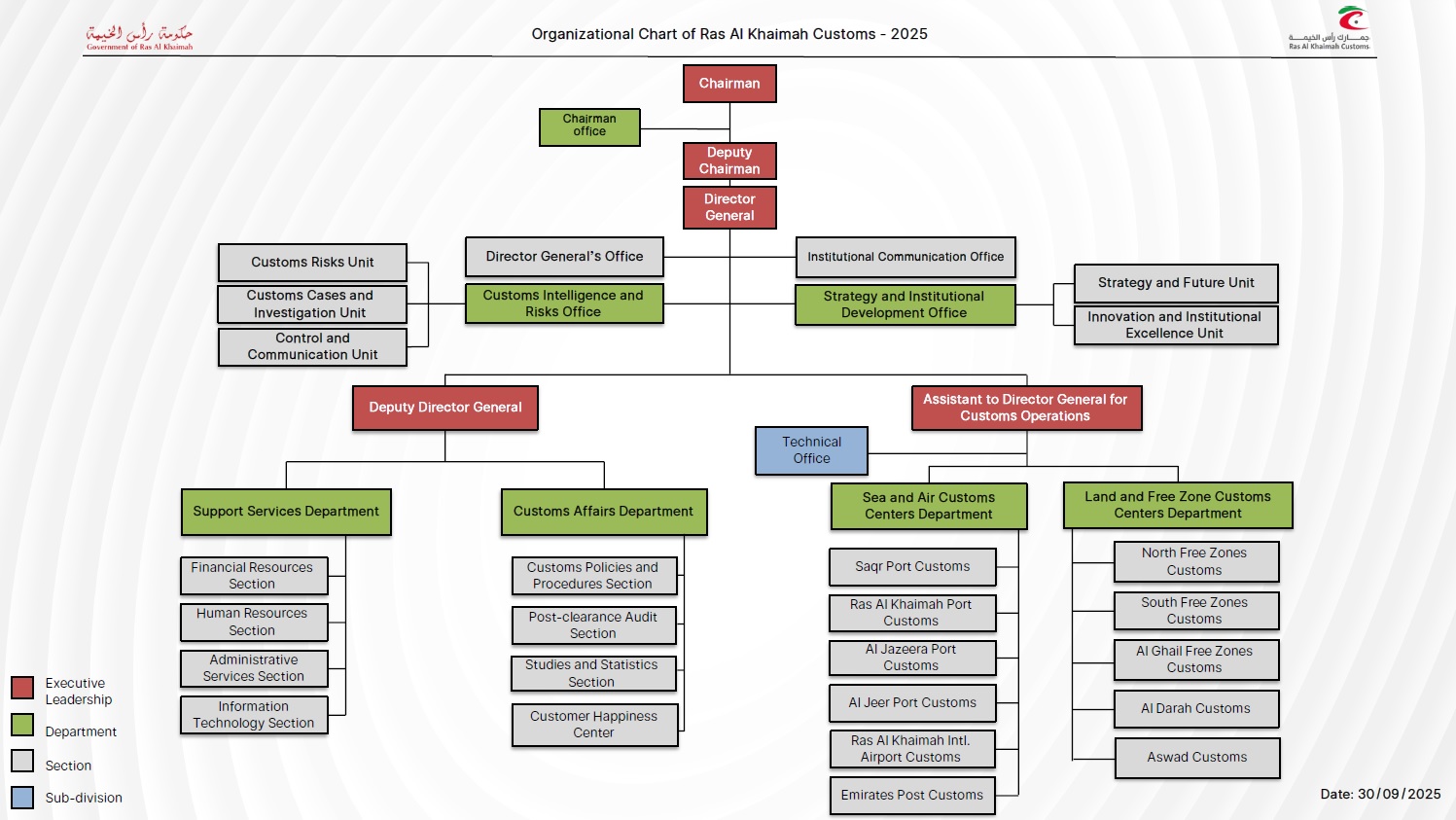 The Support Services Department of Ras Al Khaimah Customs endeavours to provide the required support and assistance to all organisational units of the Customs Department, wherever it is required. The Support Services Department is doing so by providing recruitment services and management of human resources performance, in addition to training and development of staff through specialised trainings in customs inspection and clearance.